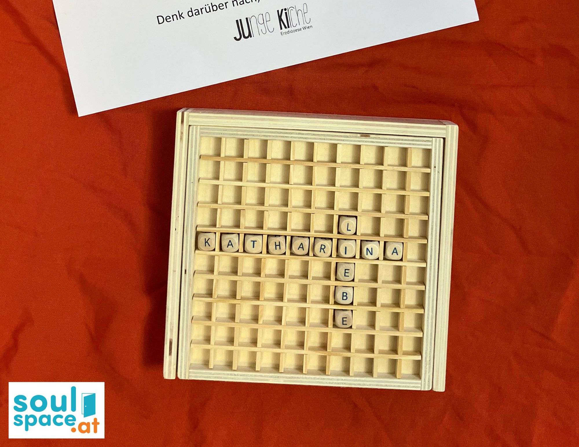Bilde mit den zusätzlichen Buchstaben ein weiteres Wort, das durch deinen Namen hindurchgeht, und eine Eigenschaft Gottes darstellt, wie zum Beispiel „Liebe“, „Vergebung“ oder „Weisheit“.